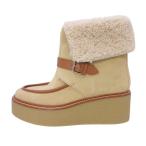 未使用 HERMES エルメス エミスフェール スエードレザー ムートン ショートブーツ プラットホーム ベルト 靴 シューズ ベージュ 37.5 レディース 古着 中古