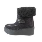 未使用 23aw HERMES エルメス エミスフェール ヴォーヴェロア ムートンブーツ プラットホーム 2way 厚底 シューズ 靴 36 ブラック レディース 古着 中古