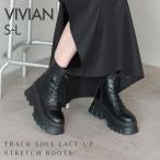 ブーツ レディース レースアップ ストレッチブーツ VIVIAN ヴィヴィアン 編み上げ 厚底ブーツ 厚底 ボリュームソール 袴 卒業式 振袖 袴ブーツ V8132AW