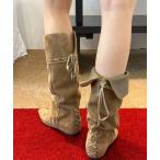 ブーツ レースアップディテールスラッシュブーツ「韓国ファッション」 レディース