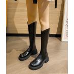 ブーツ バックファスナー ウエスタン 厚底 ロング ブーツ レディース