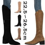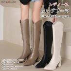 ロングウエスタンブーツ レディース ロングブーツ 太めヒール 5cm チャンキーヒール レディース ブーツ ロング ウエスタンブーツ 黒 ブラック ブラウン ベージュ