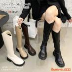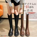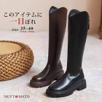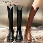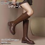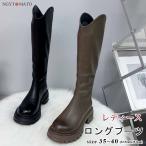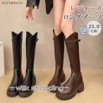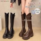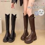 ロングブーツ レディース 厚底 ブーツ ロング丈 ラウンドトゥ PU ウエスタンブーツ バックファスナー 太めヒール 美脚 おしゃれ 履きやすい 歩きやすい 黒 茶色
