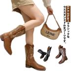 ウエスタンブーツ レディース ロングブーツ 防寒ブーツ ショートブーツ ウエスタン ブーツ スクエアトゥ 太ヒール 刺繍 靴 履きやすい 歩きやすい