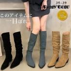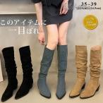 ロングブーツ レディース ウエスタンブーツ デニムブーツ おしゃれ ローヒール ポインテッドトゥ コーンヒール スエード調 履きやすい 歩きやすい