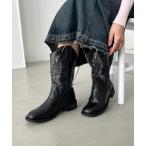ブーツ チャンキーヒールウエスタン風ロングブーツ レディース