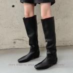 日本製 本革 ロングブーツ レディース ブーツ ロング 幅広 4E フラット ウェッジ 黒 くしゅくしゅ ウエスタン ブラック グレー カジュアル