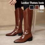 レディース ロングブーツ ウエスタン 牛革 レザー 美脚 大きいサイズ ブーツ 小さいサイズ 長靴 秋冬 ローヒール サイドジッパー ロング ブーツ 靴 脚長効果 長ブーツ 太ヒール オフィス カジュアル おしゃれ