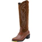 ウエスタンブーツ レディース ロングブーツ 太ヒール 低ヒール 疲れない ウェスタン ビンテージ 美脚 ミドル丈 ポインテッドトゥ 靴 茶色 ブラウン 無地