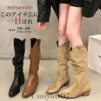 ロングブーツ 太ヒール ヒール3cm ブーツ ウエスタン 美脚 カジュアル レディース ファッション シューズ 25.0 25.5 26.0 26.5 27.0 27.5 28.0 28.5 29.0