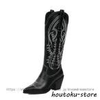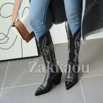 ブーツ レディース シューズ ウエスタンブーツ ロングブーツ 靴 ポインテッドトゥ ヒールブーツ カウボーイブーツ 2024秋冬