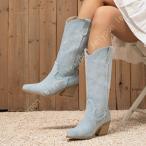 ウエスタンブーツ レディース ロングブーツ 秋冬 デニム ジョッキーブーツ ニーハイブーツ 大きいサイズ ポインテッドトゥ 高筒 ゆったり