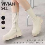 ブーツ レディース ロングブーツ 厚底ブーツ Vivian ストレッチ 厚底 ボリュームソール ブラック 黒 ストレッチブーツ ストレッチブーツ V8840AW