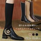 ロングブーツ レディース ニーハイブーツ ロング丈 ストレッチ ニットブーツ フラットヒール 美脚 カジュアル おしゃれ 歩きやすい 全3色 大きいサイズ