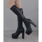 ブーツ レザー調 厚底 チャンキーヒール ストレッチ ロング ブーツ レディース