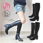 ブーツ レディース ロング ストレッチ スエード サイドジップ 履きやすい 太ヒール 6.5cmヒール 歩きやすい 黒 レザー 合成皮革 No.9104 22.5-24.5cm ブラック リバティードール