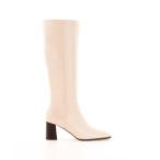 43%OFF【ラスイチSALE】 ブーツ レディース ロング ストレッチ 黒 スクエアトゥ 太ヒール サイドジップ 履きやすい 7cmヒール レザー 合成皮革 防寒 No.9102 22.5-24.5cm ブラック 白 アイボリー リバティードール