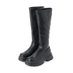 人気の厚底ストレッチロングブーツにスエード素材のブラックが仲間入り!今っぽい重ためディテールのボリュームソールは履くだけで旬スタイルの完成!メーカー希望小売価格はメー...