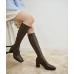 ブーツ スクエアトゥ ストレッチ ロングブーツ (7.5cmヒール) レディース