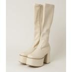 ブーツ Mafmof(マフモフ)厚底ボリュームヒールストレッチロングブーツ レディース
