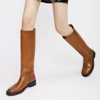 ロングブーツスムースヒール細身歩きやすいロングブーツレディースブーツレディースムートン暖かい C&J ジョッキーブーツファスナースリップオン