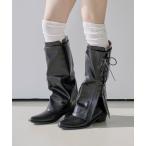 ブーツ フェイクレイヤードレースアップロングブーツ レディース