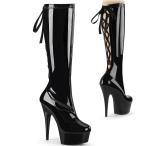 20cm ヒール 高め Pleaser プリーザー 厚底 ロングブーツ レースアップ 編み上げ ハイヒール ピンヒール 黒 ブラック エナメル 大きいサイズ 靴 レディース 取寄