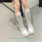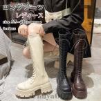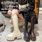 ブーツ レディース ロング 黒 白 秋冬 シンプル 美脚 レースアップブーツ 編み上げシューズ 長靴 厚底 カジュアル 履きやすい コスプレ靴 cosplay用