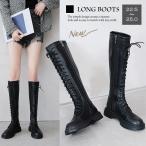レディース ロングブーツ 編み上げブーツ レースアップ ロング丈 ジップアップ PU レザー 歩きやすい 大きいサイズ 秋冬 靴 ニーハイブーツ 個性 おしゃれ