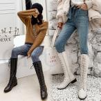 ロングブーツ レースアップ レディース ロンブー ニットブーツ ハイブーツ ラウンドトゥ ジョッキーブーツ 厚底 美脚 ブーツ 安定感 厚底ブーツ
