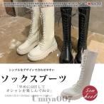 ブーツ 厚底 レースアップ ソックス ロング ブーツ レディース
