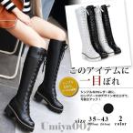 ロングブーツ レディース レースアップブーツ 編み上げ ロング丈 厚底 PU 合成革 シンプル 太ヒール 美脚 カジュアル おしゃれ 歩きやすい 全2色 大きいサイズ