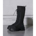 ブーツ 厚底レースアップリブストレッチロングブーツ レディース