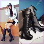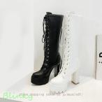 ファッションブーツ レディース ハチゴウ ゴスロリ風 編み上げ 厚底 レザー ロング ブーツ レースアップ ゴシック ロリータ ガールズ ファッション