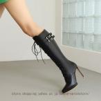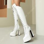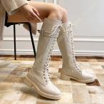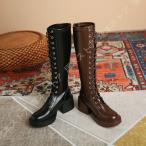 厚底 レースアップブーツ レディース 太ヒール ロングブーツ レースアップ 編み上げブーツ ロング ロングブーツ ラウンドトゥ ブーツ チャンキーヒール