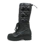 【名東】ディオール ロングブーツ カナージュ 36 1/2 BK レザー レースアップ レディース 女 靴