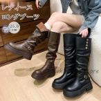 ロングブーツ 厚底 レディース ブーツ ロング丈 黒 ラウンドトゥ プラットフォーム 太めヒール 筒太め PU 2way 大人 美脚 おしゃれ 歩きやすい 履きやすい 秋冬