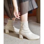 ブーツ スクエアトゥ 太ヒールショートブーツ レディース