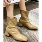 ブーツ スクエアトゥ 太ヒールショートブーツ レディース