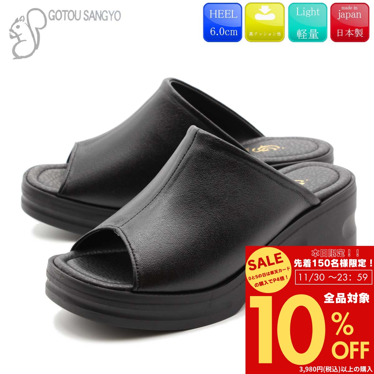日本製 ミュール サンダル レディース オフィスサンダル シューズ ヒール 職場 オフィス 歩きやすい ウェッジソール ウエッジソール サボサンダル 1152