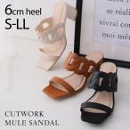 ミュール サンダル レディース ミュールサンダル ヒール チャンキーヒール 疲れにくい カットワーク 送料無料