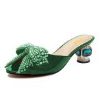 【並行輸入品】LIXGVHRO キトンヒール ミュール レディース スリッポン ポイント オープントゥ ヒールミュール, 454グリーン。, 2