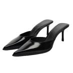 【並行輸入品】MRKEWUNEY ヒールミュール レディース メタリック スリップオン ミュール バックレス スティレットヒール, 627 ブラ