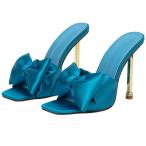 【並行輸入品】KOKOMOMO レディース ボウハイヒール ミュール スティレット スライド ポインテッドトゥ サンダル, ブルー1個。, 7.