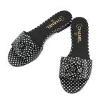 シャネル サンダル ココマーク カメリア ドット ラムスキン レディースサイズ38C G45499 靴 ミュール 黒 白