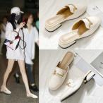 ビット付 ローファー おじ靴 かかとなし レディース ミュール サンダル スリッパ スクエアトゥ ローヒール ぺたんこ靴 フラット 走れる 痛くない オフィス婦人靴