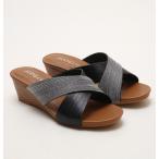 サンダル ふかふかクッションインソールのワイドクロスバンドウエッジサンダル レディース