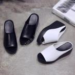 厚底 サンダル レディース ミュール ウェッジソール 美脚 7cm ヒール オフィス 黒 白 サボサンダル つっかけサンダル 歩きやすい 可愛い 軽量 幅広 春夏
