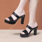 チャンキーヒール サンダル 厚底 サンダル レディース ミュール サンダル 10cmヒール 歩きやすい 太ヒール スパンコール 大きいサイズ 疲れない ストーム