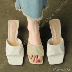 レディース ミュール サンダル 太ヒール オープントゥ 美脚 ミュールサンダル キャバサンダル ヒール4.5cm おしゃれ きれいめ パール付き ヒールサンダル